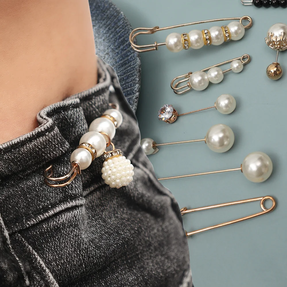 Pearl Brooches Set Waist Buckle Cardigan Jeans Anti-fade Brooch Pins Women Sweater Coat Anti Fall Pearls Clothes Pin Decoration