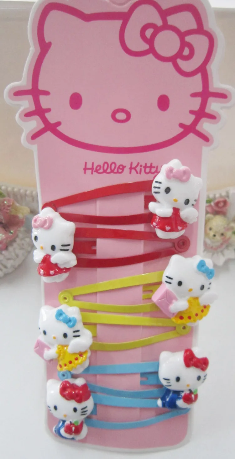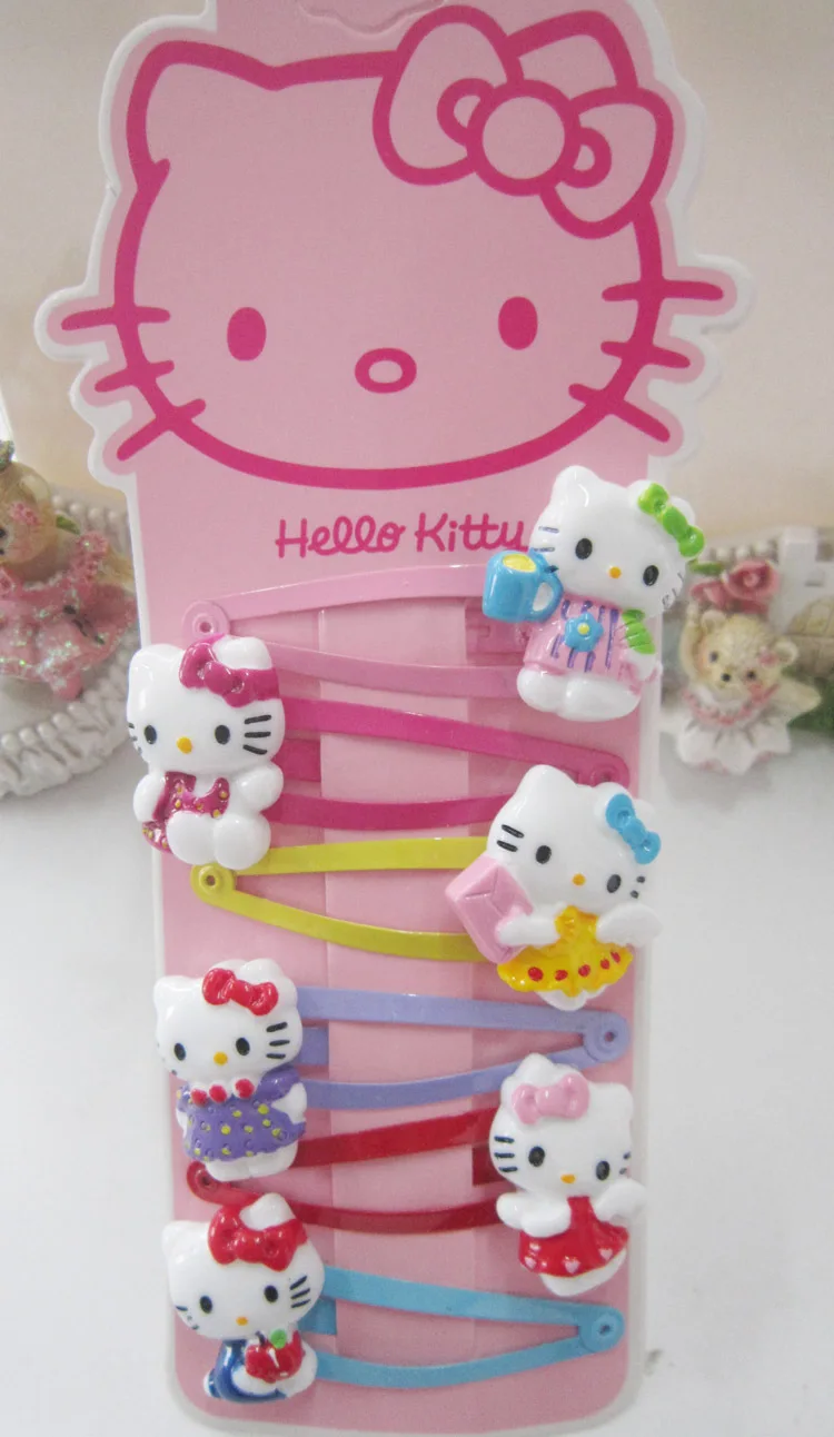 Sanrio Girl Cute Hair Clip Hello Kitty Cartoon Hair Clip Girl Kawaii Hair Accessories Headdress Bangs Clip Kitten Bow Hair Clip