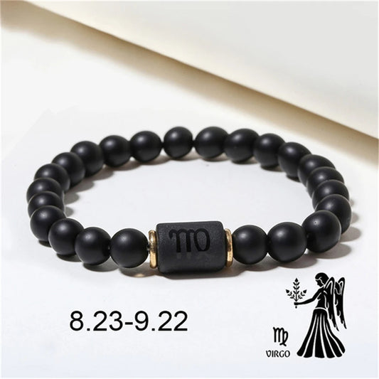 Fashion Zodiac Bracelets For Women Men Matte Black Agate Beads Wristbands Couple Gifts Jewelry Beaded Bracelets